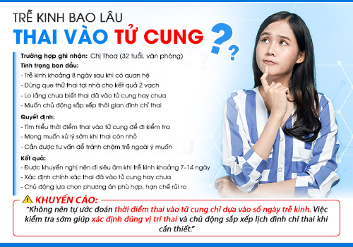 Trễ kinh là dấu hiệu phổ biến của thai kỳ, nhưng để biết chính xác thai đã vào tử cung hay chưa, bạn cần kiểm tra đúng thời điểm. Việc hiểu rõ trễ kinh bao lâu thai vào tử cung sẽ giúp bạn chủ động hơn trong việc thăm khám và lựa chọn hướng xử lý phù hợp.